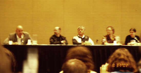 SW Celebrity Panel (l to r: Jerome Blake (I believe), Timothy Zahn, David Prowse, Aaron Allston, and an editor from Del Ray)