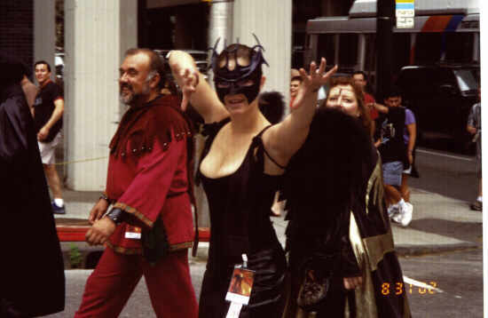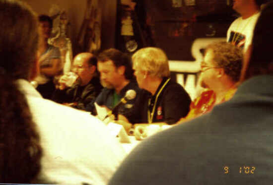 SW Trivia Contest Panel (l to r: Timothy Zahn, Michael Stackpole, Jeremy Bulloch (sp?), Aaron Allston)