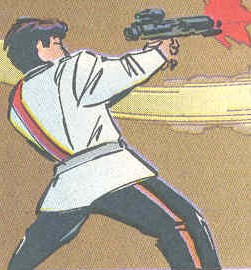 Here Wedge shows us the "canon" weapon to go with the uniform. *g* Another