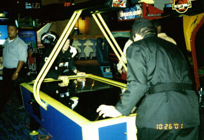 Air hockey match.